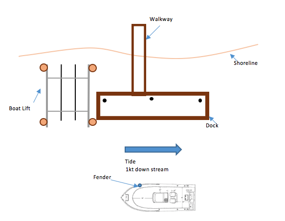 – Approach the dock/lift and stop the boat in open water to assess the effect of the tide and the wind.
